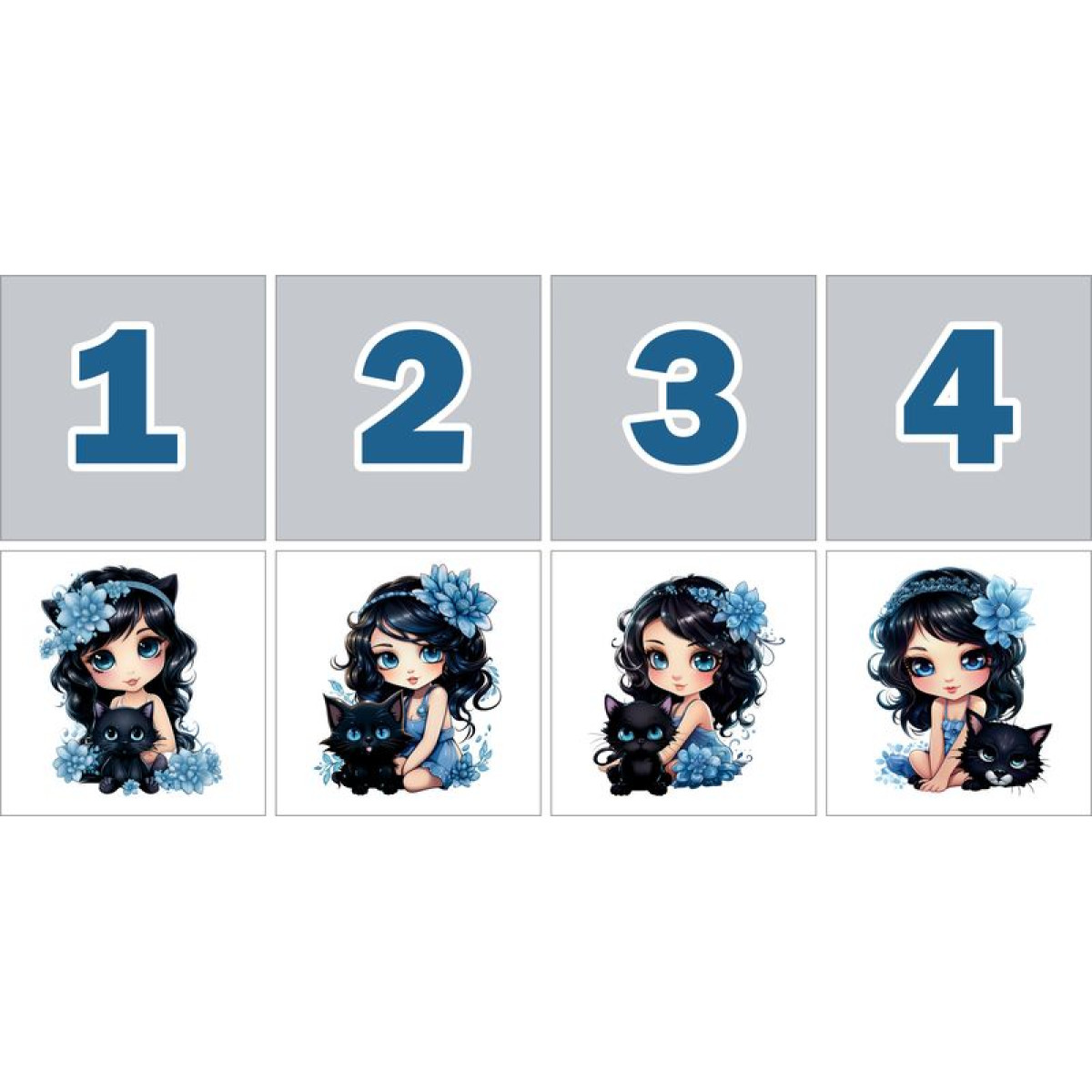 Cica és Lány memóriajáték - Szám és kép összekötése