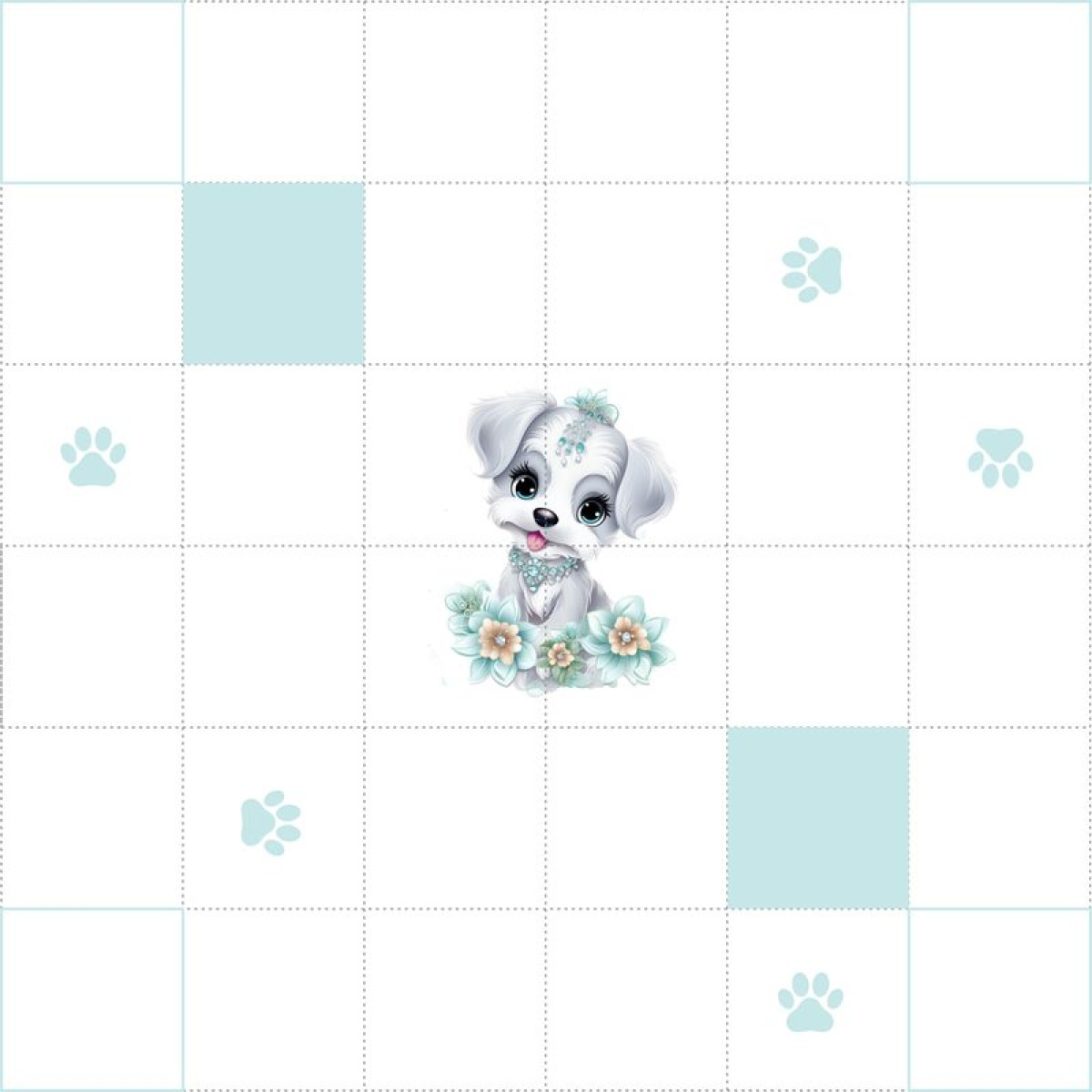 1 fehér, díszes kutyus – középen, ő az indulási pont